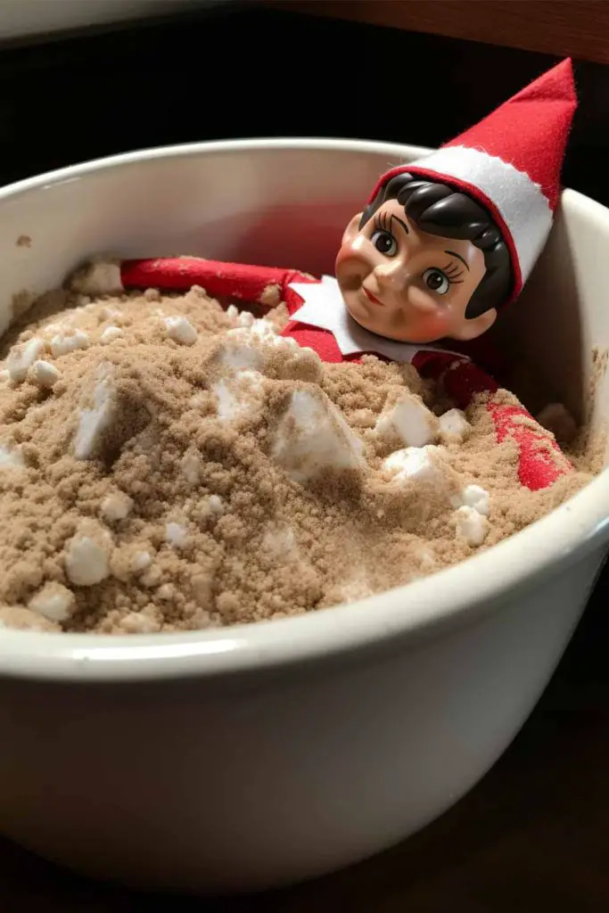 Catch your elf raiding the kitchen for ingredients to bake tiny elf-sized cookies. Leave a note saying they’re baking treats for Santa’s elves.